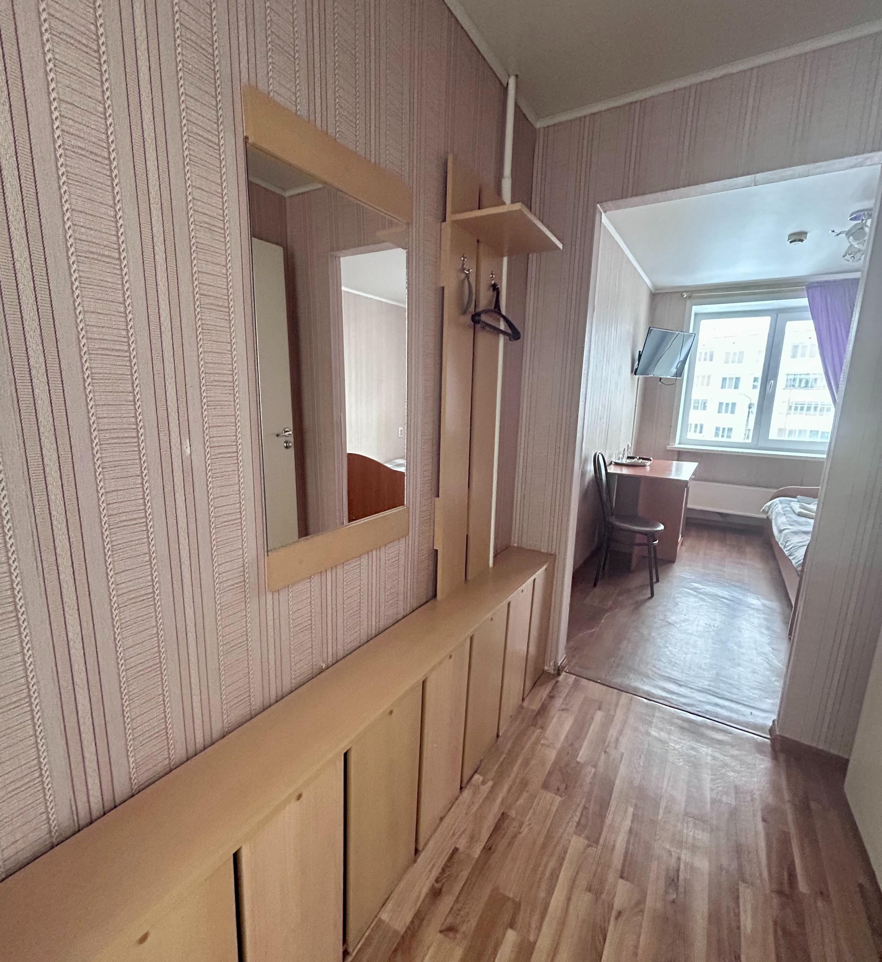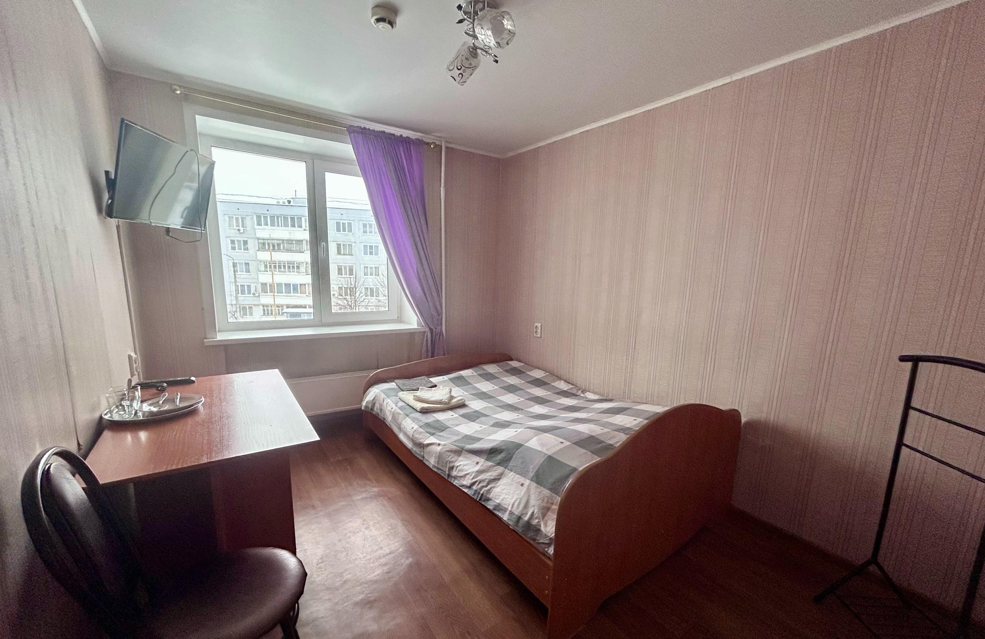 В оснащение номера входит: одна двухспальная кровать, письменный стол, стулья, холодильник, телевизор.